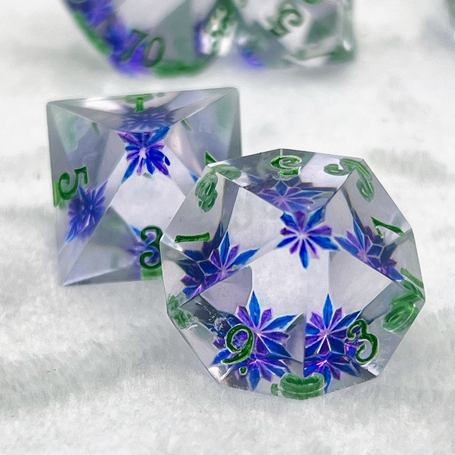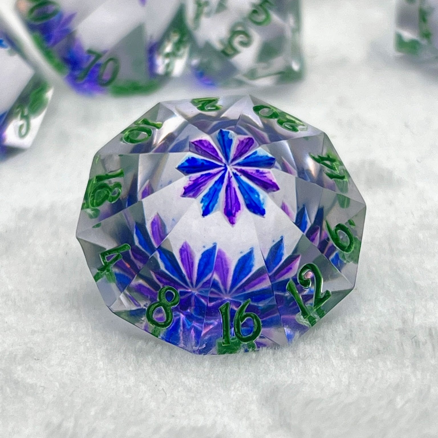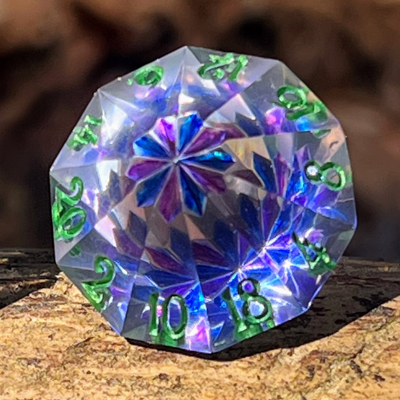 From one side, they’re crystal clear. From another, they explode with color. Inspired by crocuses, violets, and other early spring blooms, these kaleidoscope-style dice reveal layered floral reflections beneath the surface—like catching a garden in a shard of glass.