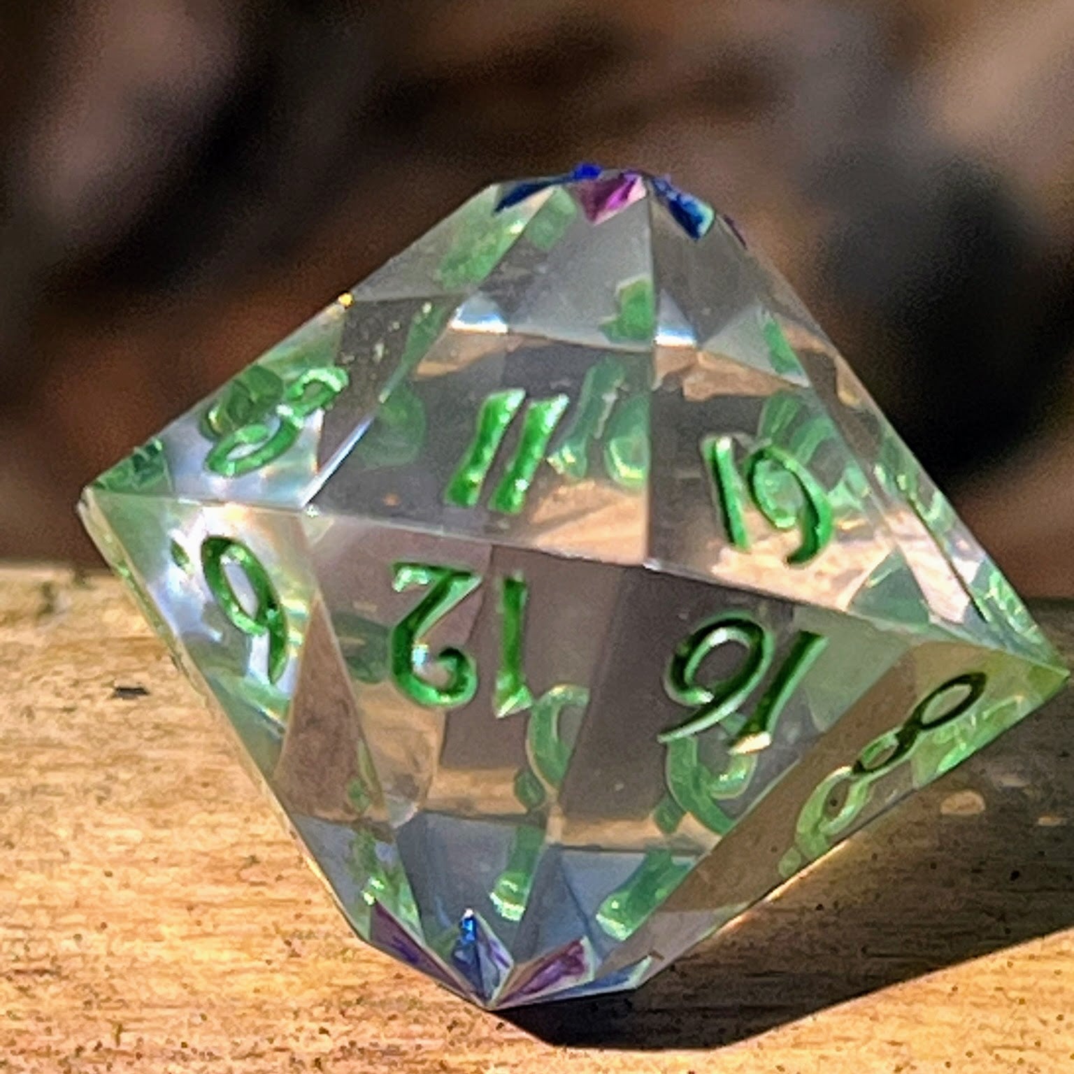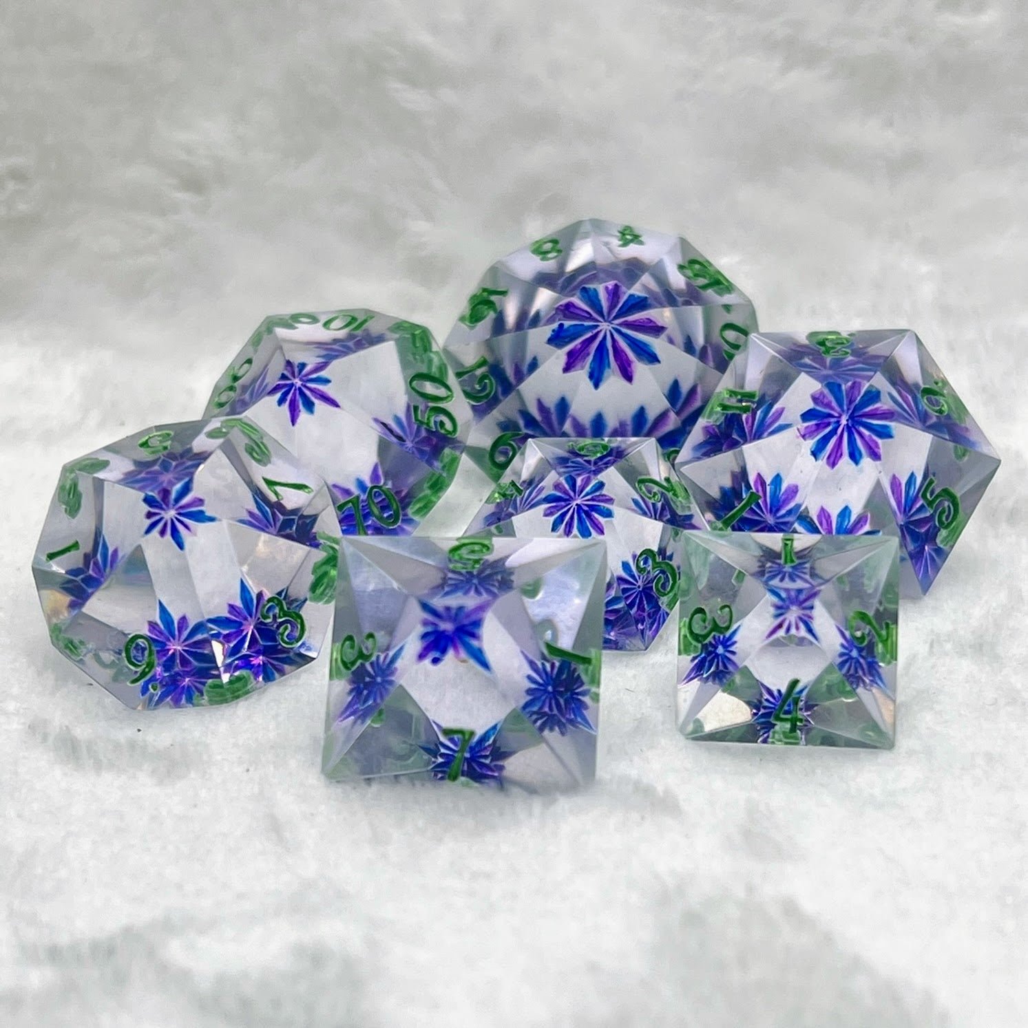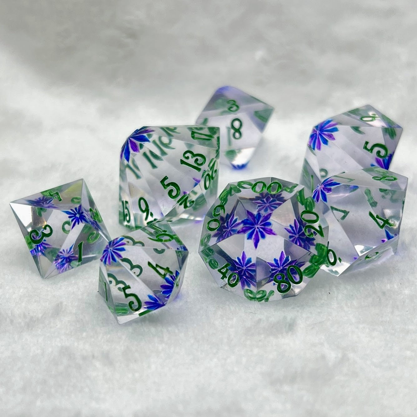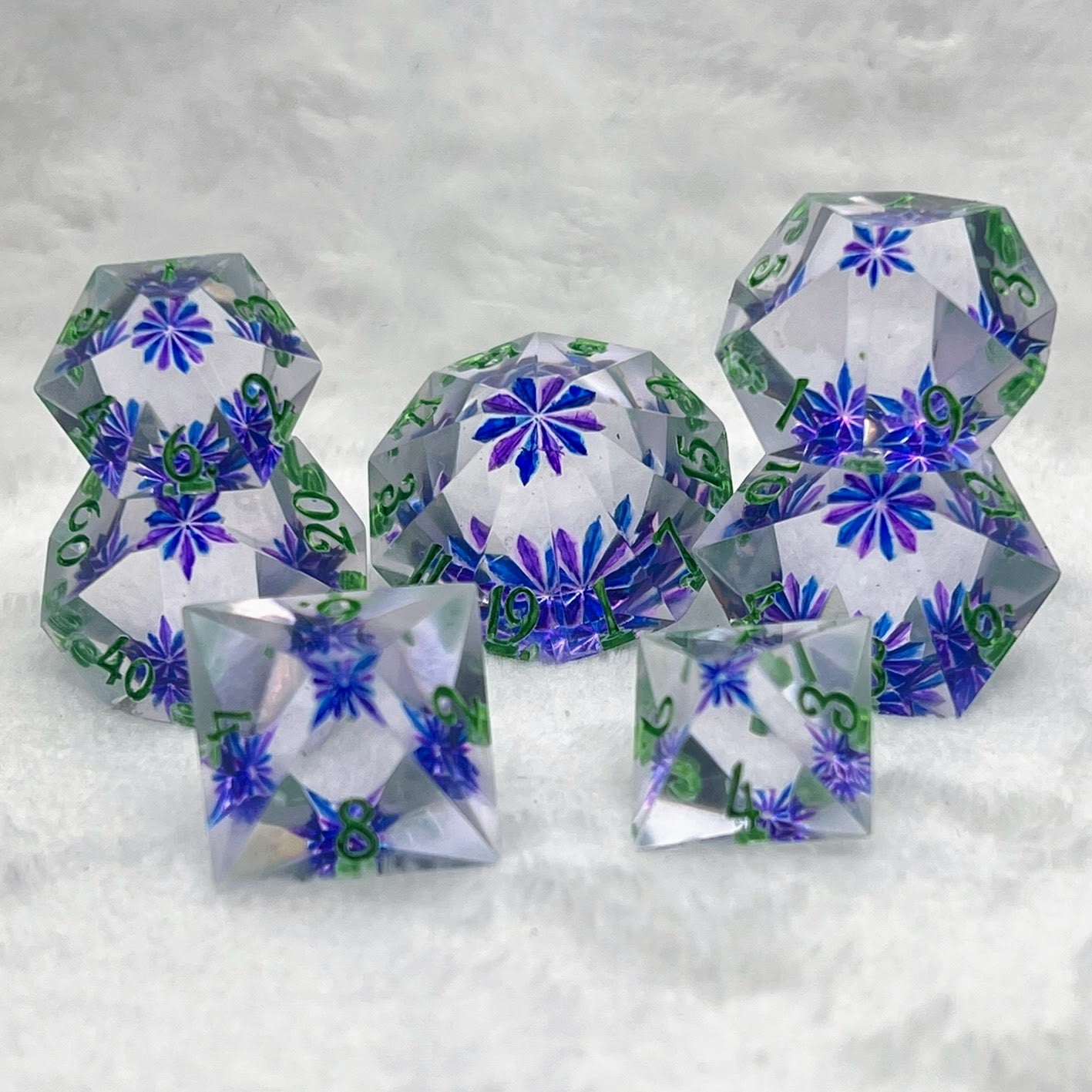 From one side, they’re crystal clear. From another, they explode with color. Inspired by crocuses, violets, and other early spring blooms, these kaleidoscope-style dice reveal layered floral reflections beneath the surface—like catching a garden in a shard of glass.