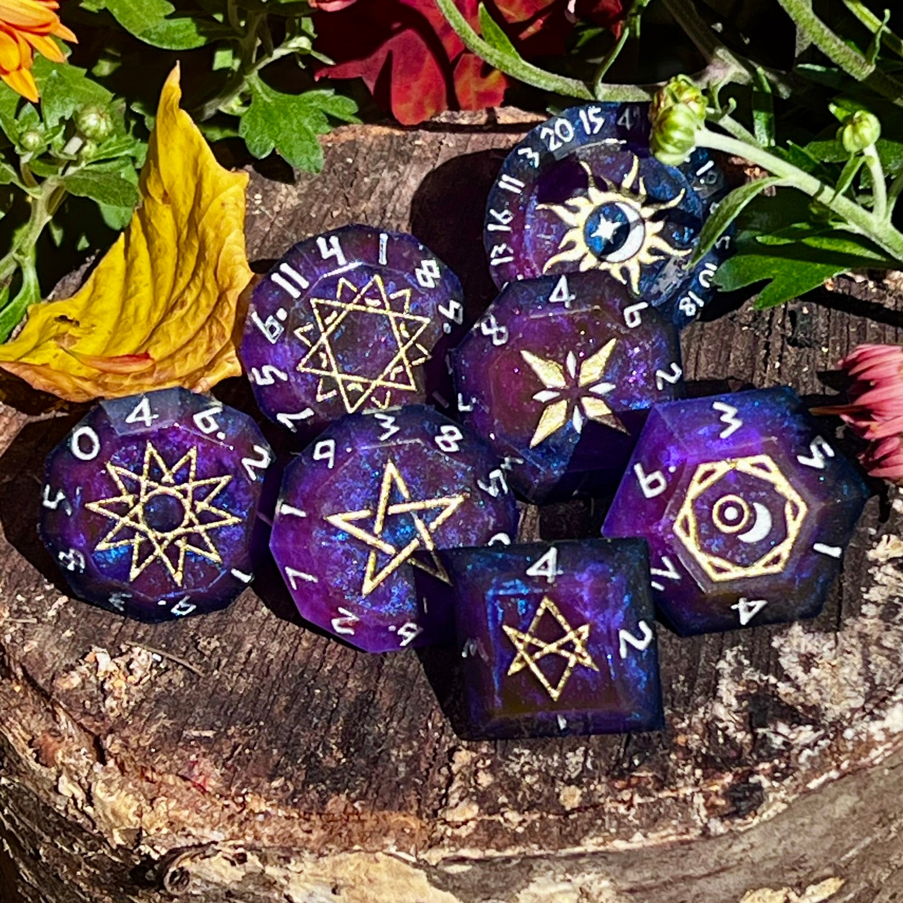 7-piece cosmic crystal style dice set