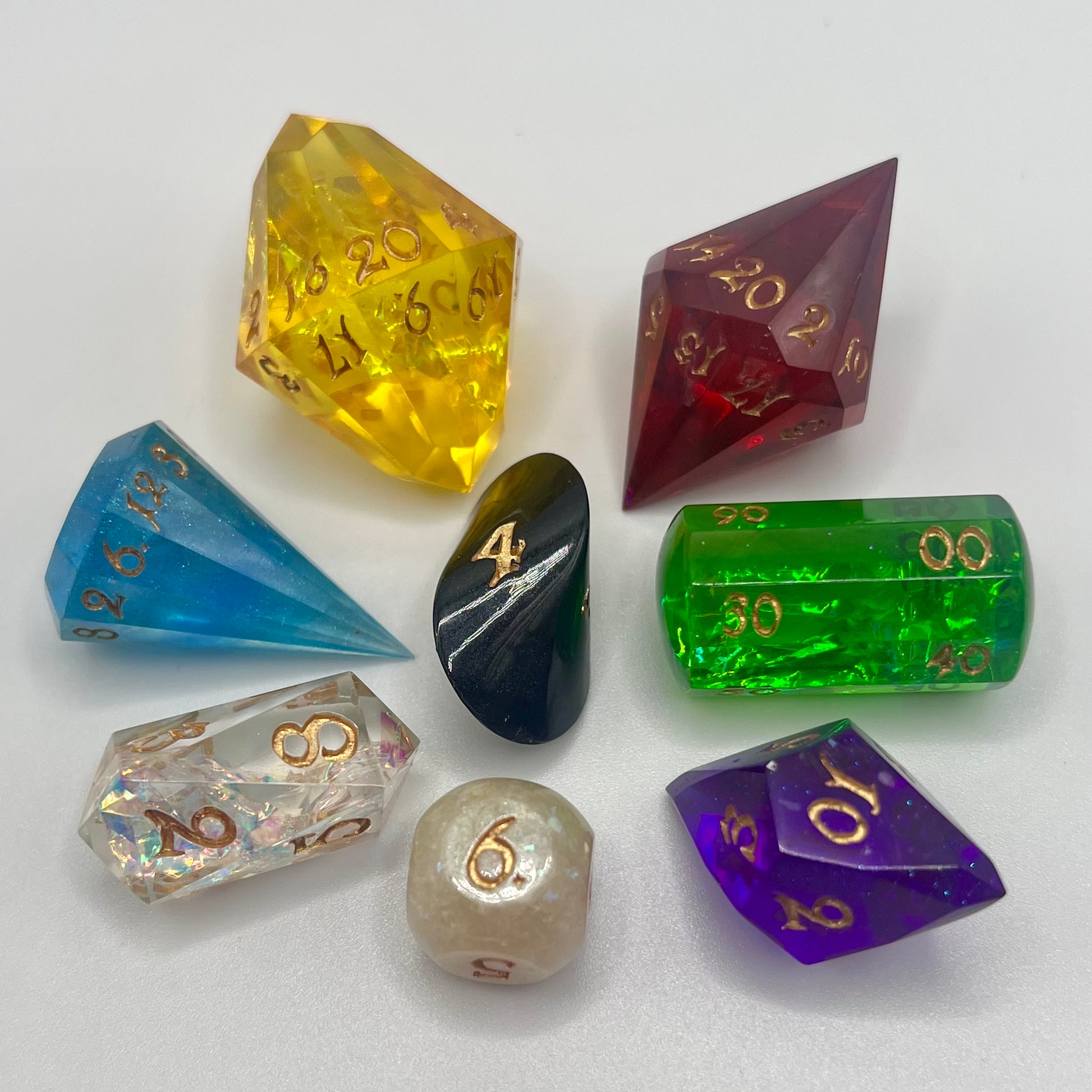 - This is an unusual but complete 8-piece set of dice, suitable for D&D and similar tabletop role-playing games.